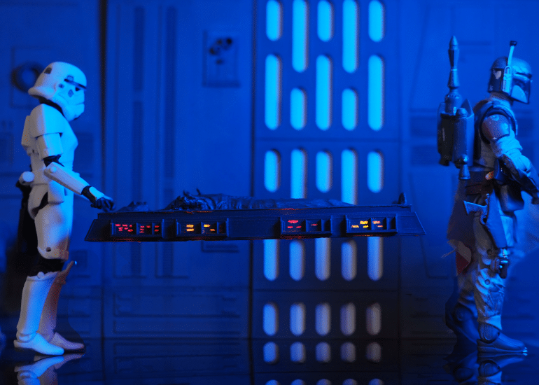 Han Solo in Karbonit eingefroren, auf dem Weg zu Boba Fetts Schiff