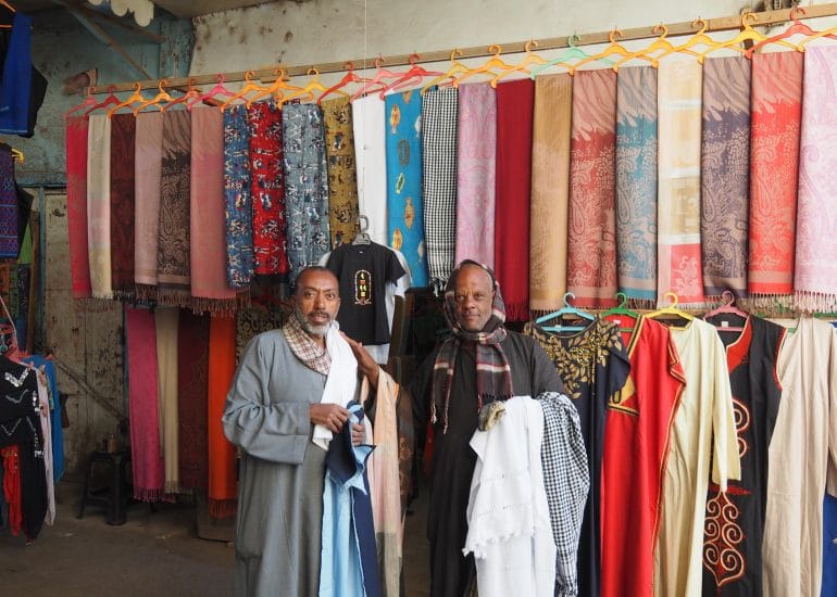 Zwei Händler posieren für ein kleines Bakschisch auf einem Basar in Ägypten